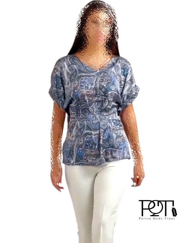 طرح: بته جقه آبی صورتی، کمربند دار از جنس خود بلوز