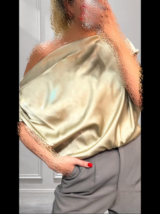 جنس و مدلمدل تاپ یقه رومی است که روی یکی از سرشانه ها افتاده،