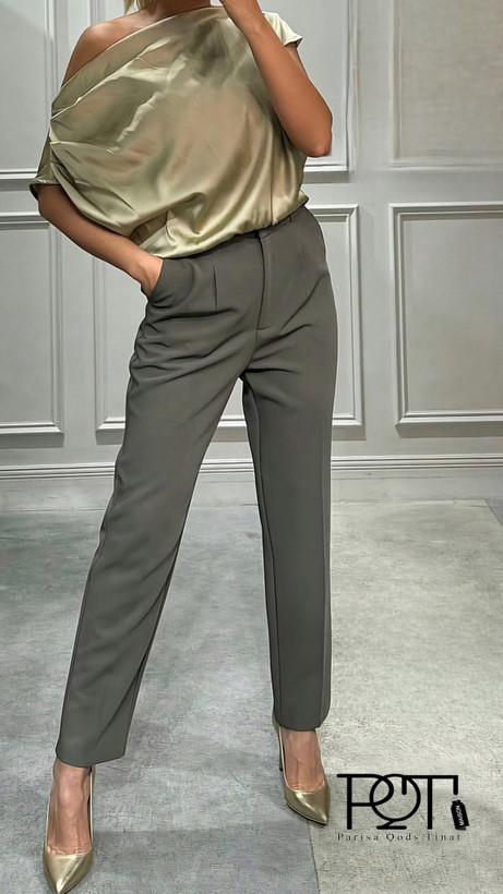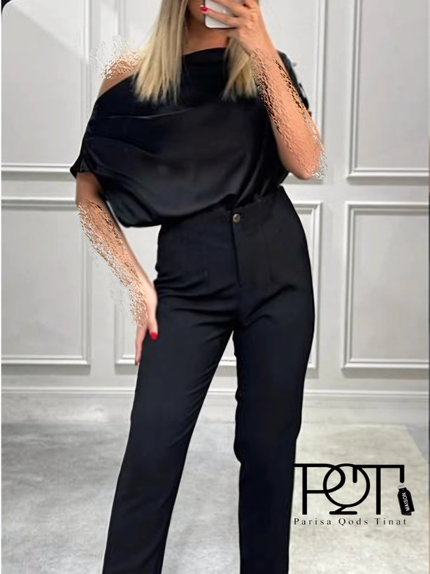 جنس و مدل: مدل تاپ یقه رومی است که روی یکی از سرشانه ها افتاده،
