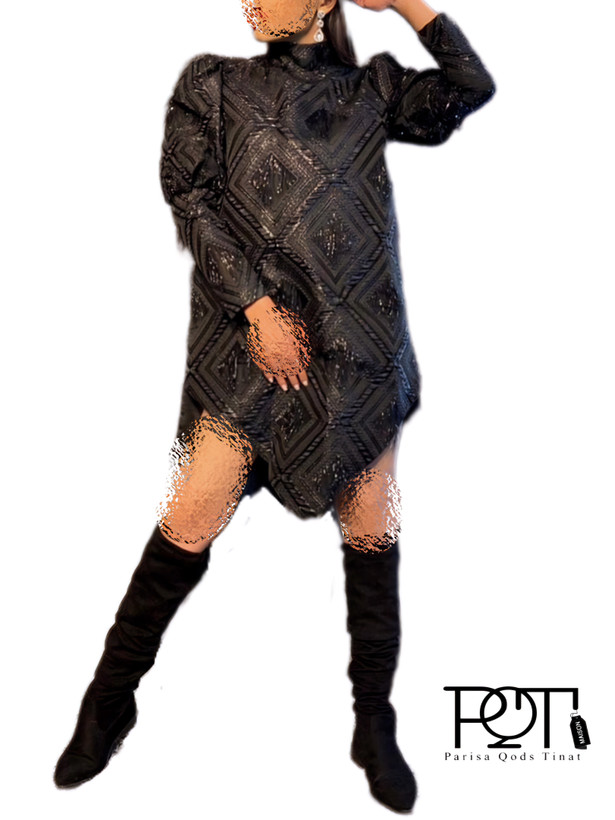 پیراهن زنانه مجلسی آستین پفی ژاکارد مشکی