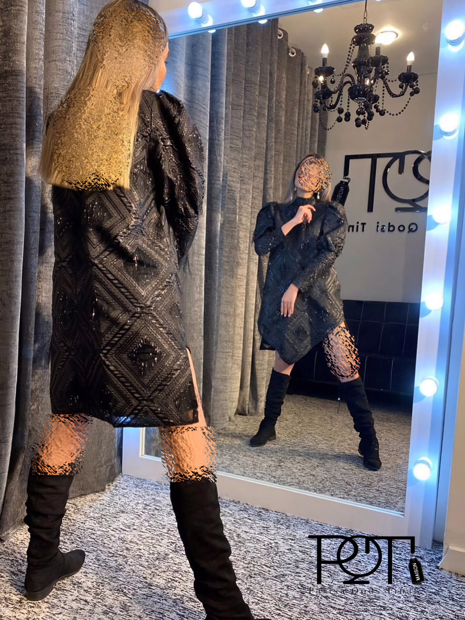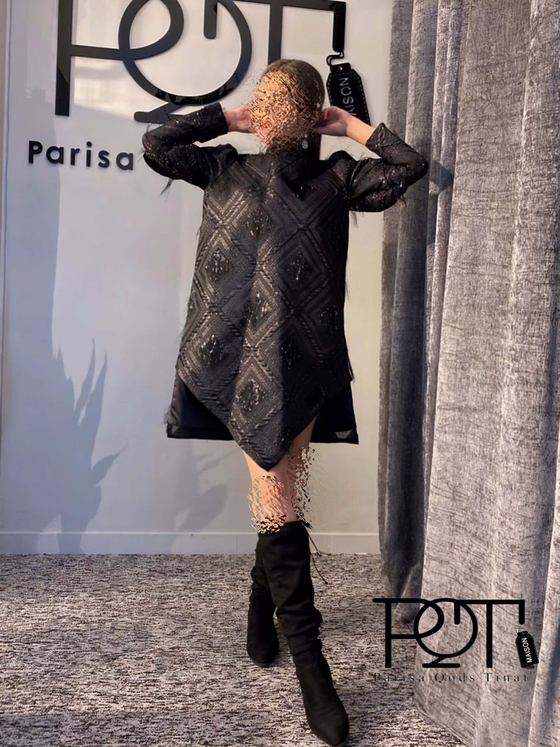 پیراهن زنانه مجلسی آستین پفی ژاکارد مشکی