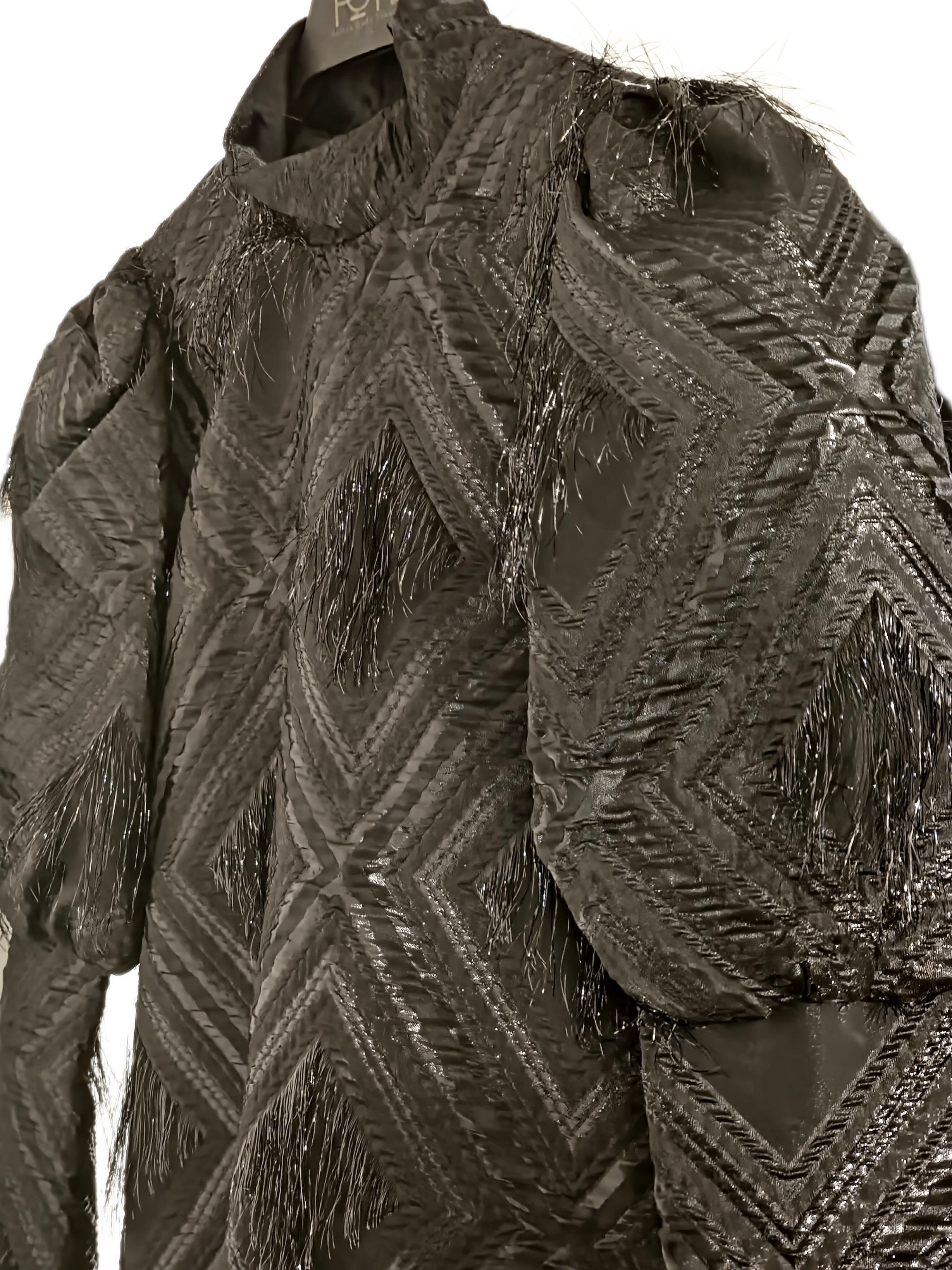 جنس : ژاکارد، در قسمت های لوزی پارچه ریش ریش دارد