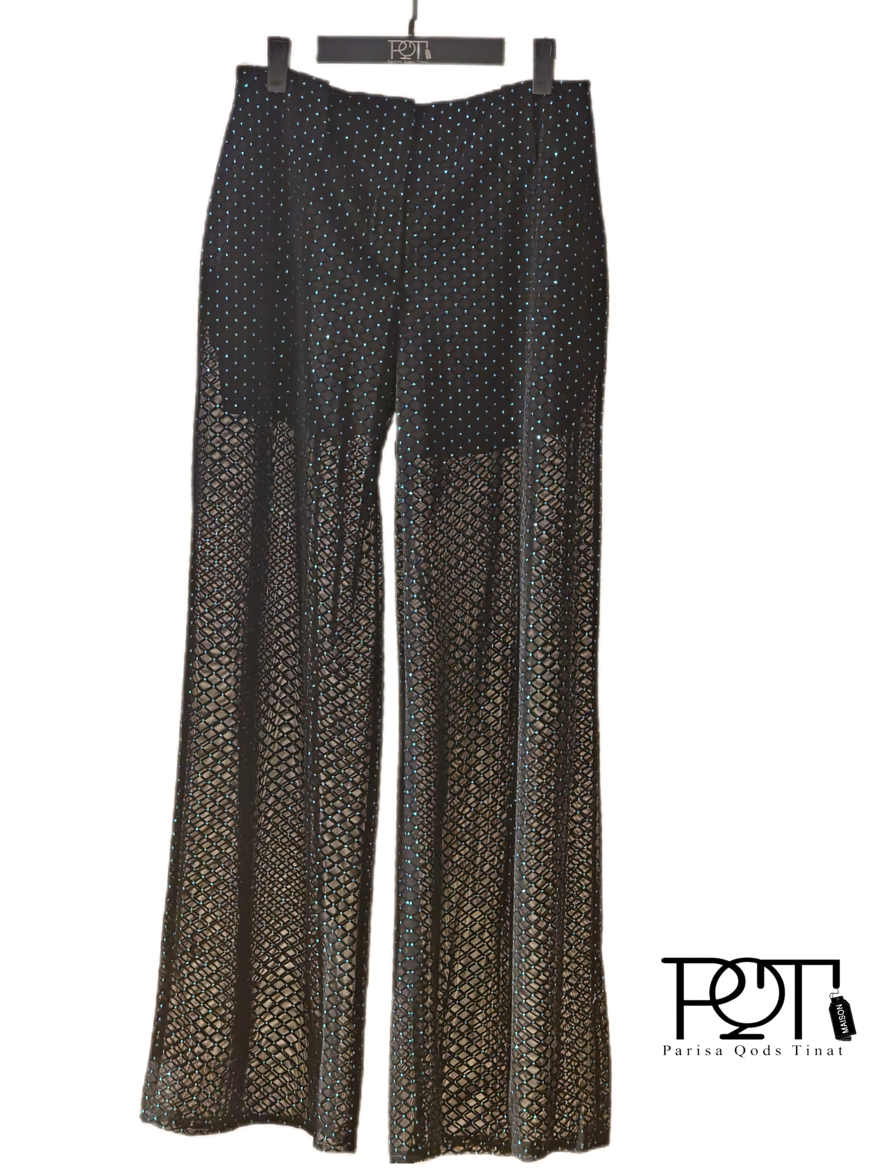 طرح تور شلوارطرح لوزی با نگین های سبز زمردی